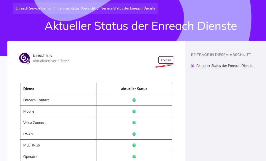 Aktueller Status der Enreach Dienste – Enreach Service Center