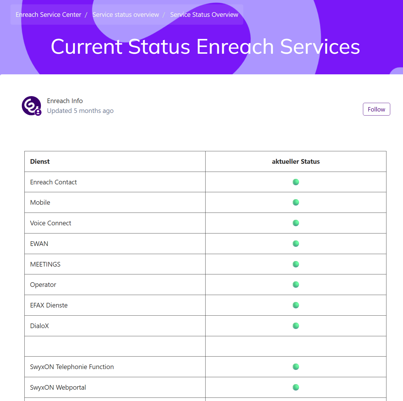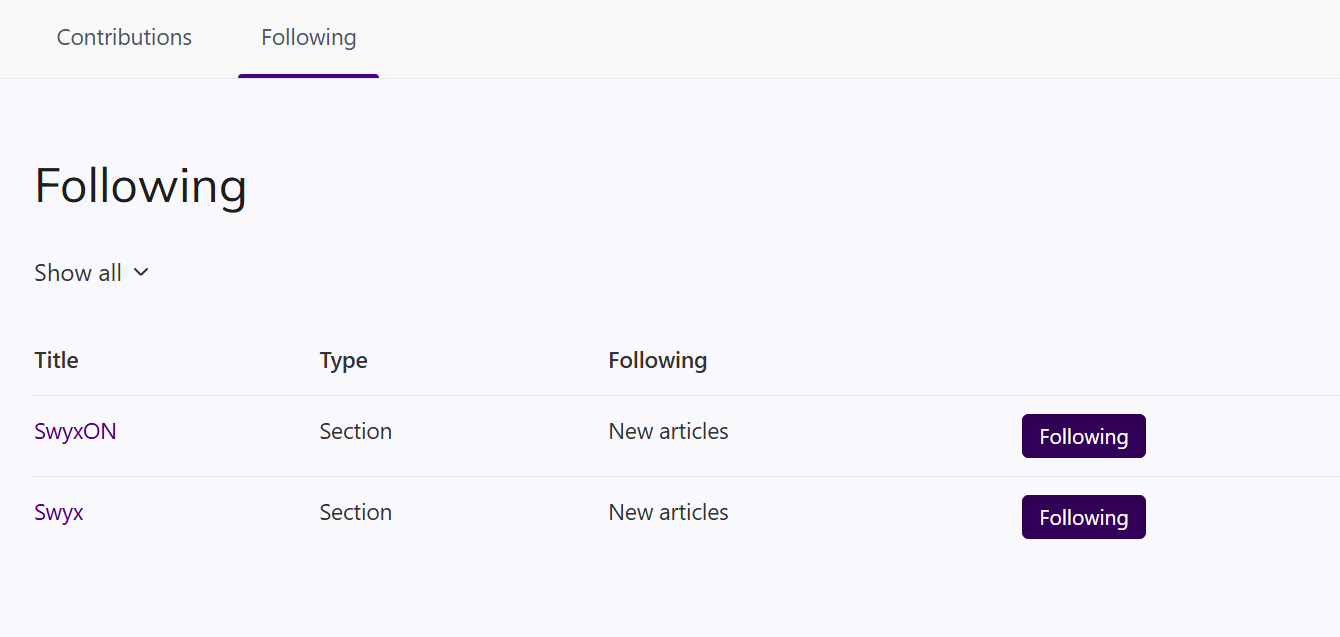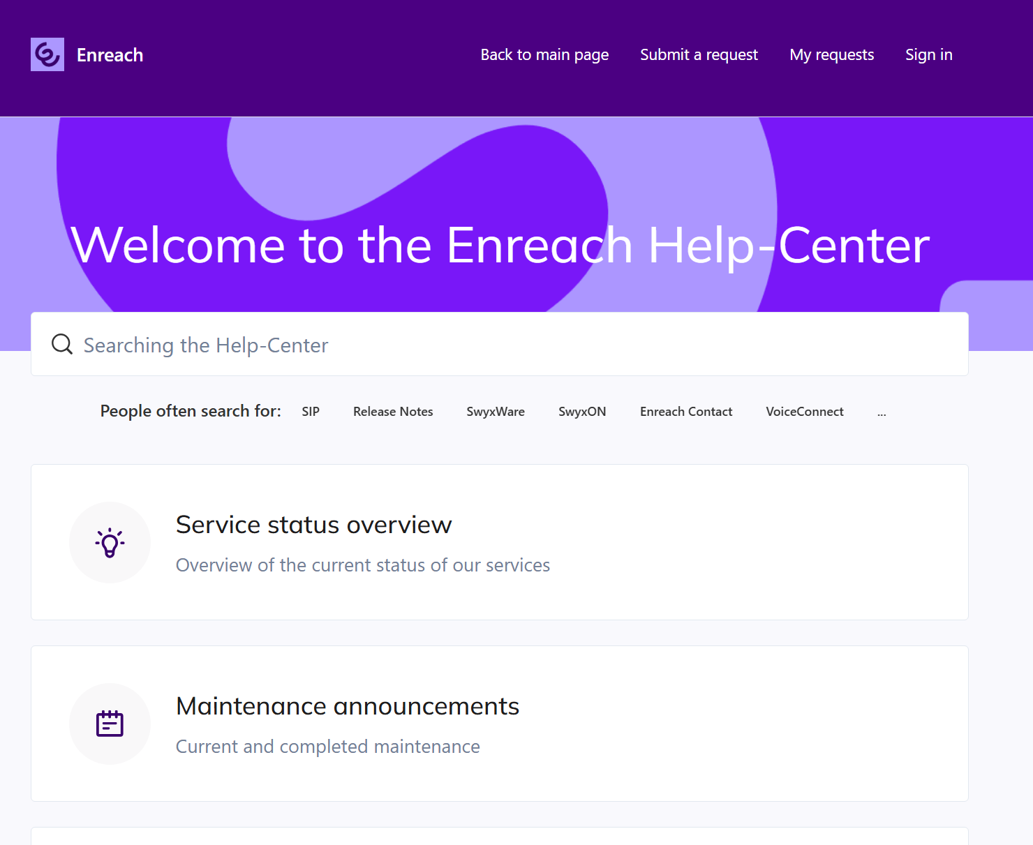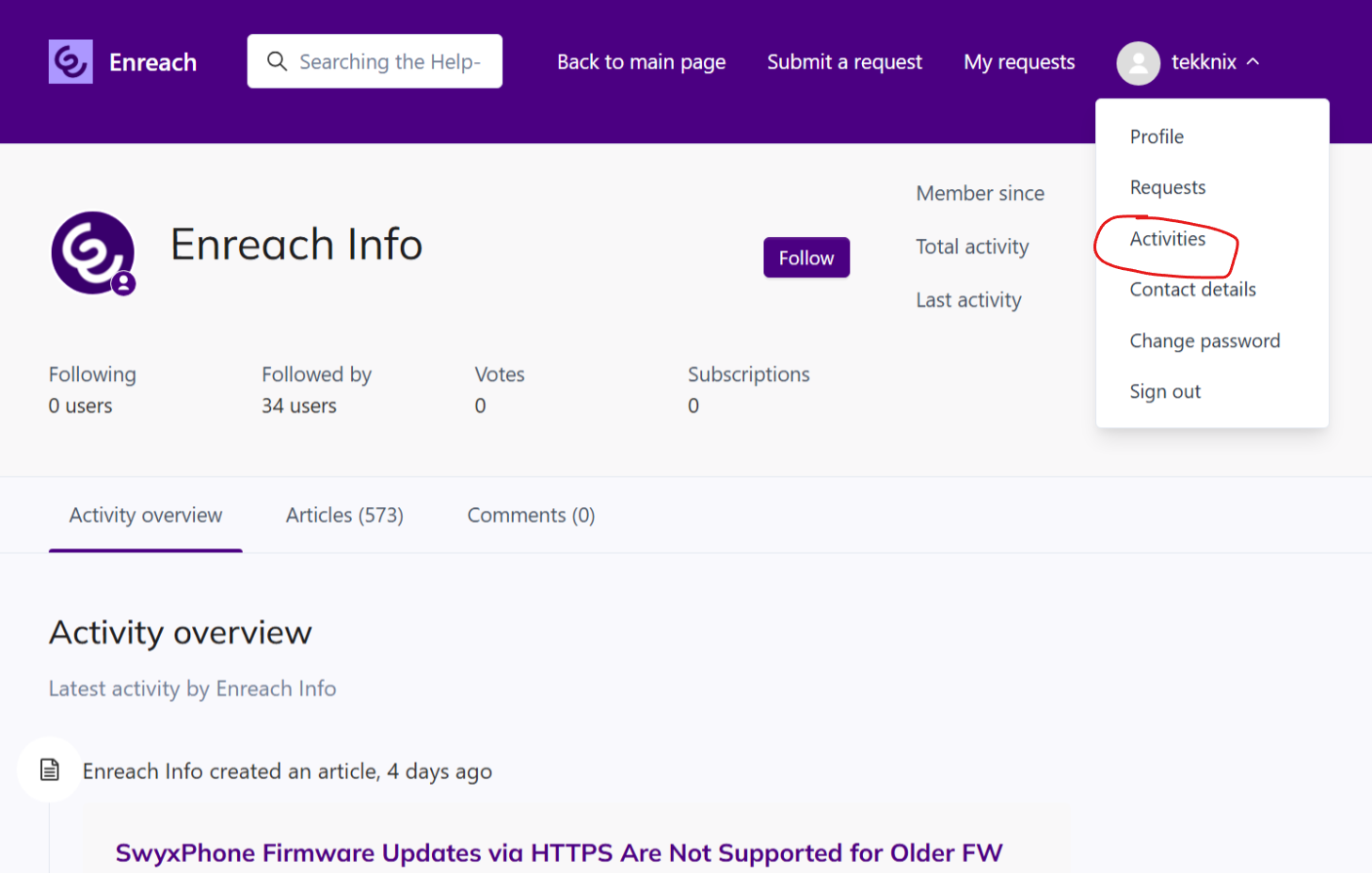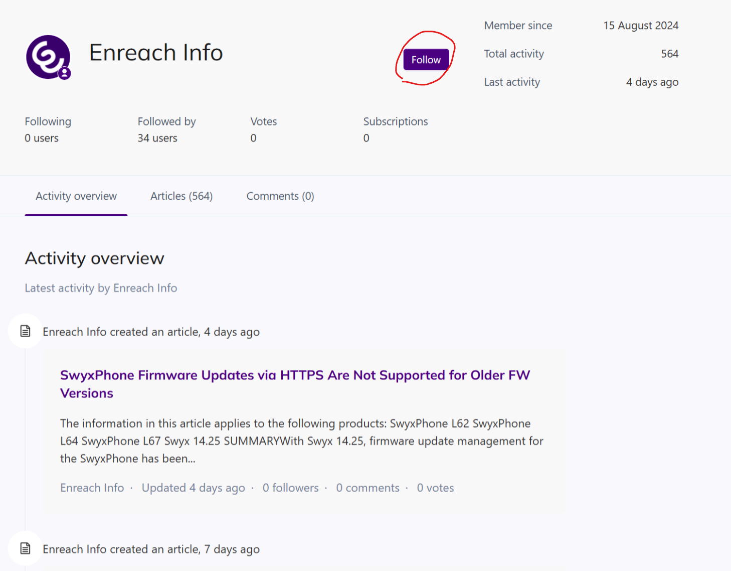 The Enreach Help Center offers you the option to follow a section within a category or a specific author.