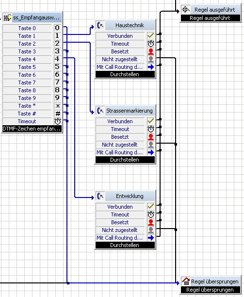 Ich habe eine Regel im Call Routing, die einen DTMF-Zeichen empfängt und auswertet.
